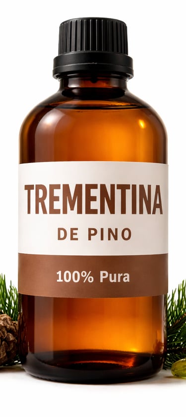 Se le atribuyen propiedades antiinflamatorias, por lo que es recomendado en casos de dolores musculares y contracturas. También posee principios antirreumáticos, antiespasmódicos, antisépticos, antifúngicos, diuréticos y como un tratamiento muy eficaz contra los parásitos intestinales. En adultos.- para expulsar la tenia, antiguamente se suministraba una fuerte dosis de una a dos cucharadas de esencia de trementina, generalmente mezclada con la misma cantidad de aceite de ricino en leche. Esto se repetía cada dos o tres días, hasta que los fragmentos del gusano dejaban de aparecer en las heces.